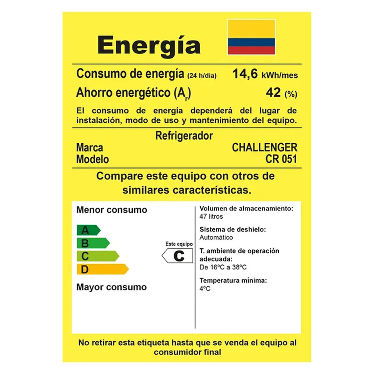 Sé el primero en reseñar “Minibar CHALLENGER Frost Una Puerta 47 Litros CR051 Gris”