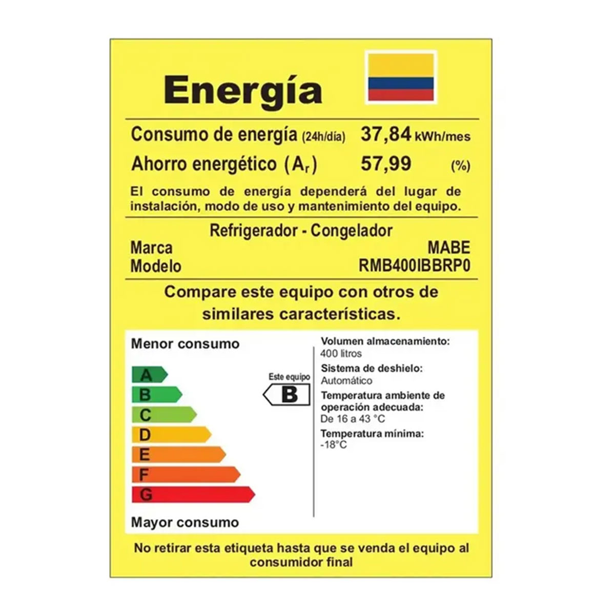 - ¡Leves detalles estíticos! Nuestra nevera MABE RMB400IBBRP0 te da tranquilidad. Ahorra hasta un 67% de energía con el compresor Eco Advance y gas refrigerante R600. Cuida tu bolsillo con componentes de alta eficiencia que maximizan el ahorro de energía. Te da más frescura con el sistema Total Fresh Flow que mejora la distribución del aire y la conservación de tus alimentos. Te da más espacios inteligentes que permiten organizar con facilidad todo tipo de bebidas y recipientes. Comprálo ya!