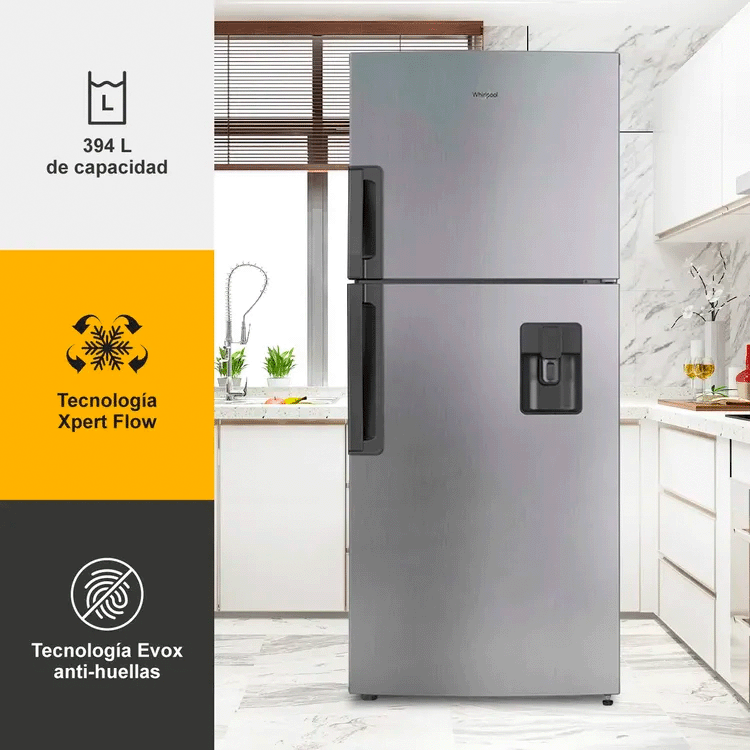 Nevera WHIRLPOOL No Frost Congelador Superior 394 Litros WRJ43AKTWW Xpert Flow Gris